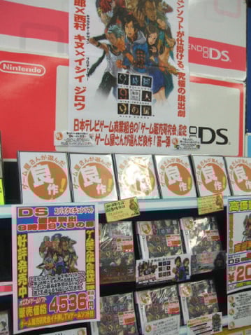 コンパクトながら、華やかに飾ってくださったネクスト・ワン 名張本店。さり気なくレイトン教授シリーズの上にコーナーを作っているあたりが、流石ですね。 逆転裁判や、レイトン教授を遊んだ人に、「今度はこういう感じのアドベンチャーどう?」ってオススメしてみるのは、いいんじゃないかと思うんです。