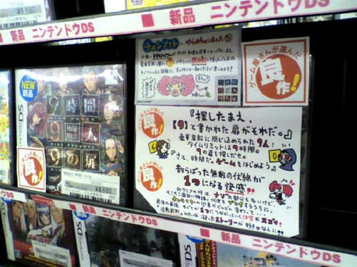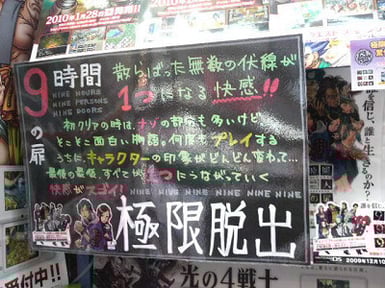 なにしろ、前の週にはNewスーパーマリオブラザーズWii、翌週はファイナルファンタジー13です。また、2009年11月26日には、同じアドベンチャーゲームのレイトン教授と魔神の笛も発売されています。999に限った話ではありませんが、この時期に発売されたゲームは、大作の影にどうしても隠れがちです。