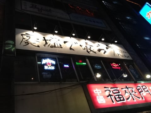 高円寺にあるすごろくやさんという、ボードゲーム屋さんとお仕事をしてまして、その打ち合わせの帰り、何か食べて帰ろうかと話していたら、そのすごろくやさんのビルに変なお店の看板を見つけてしましました。「廃墟で喰らう」ですって。